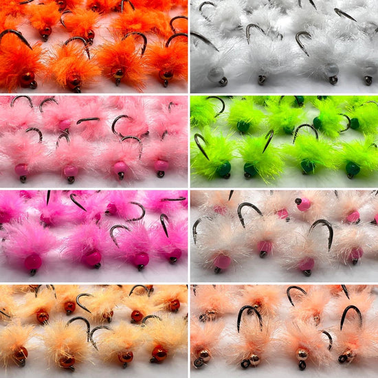Egg PatternsMade with tungsten beads, these egg patterns sink quickly. Choose your preference of color and start fishing