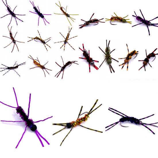 Pat's StonefliesArguably, the most popular of the Stonefly patterns, these Pat's rubber leg stoneflies are made with tungsten beads and provide movement in the water with their flexible legs
