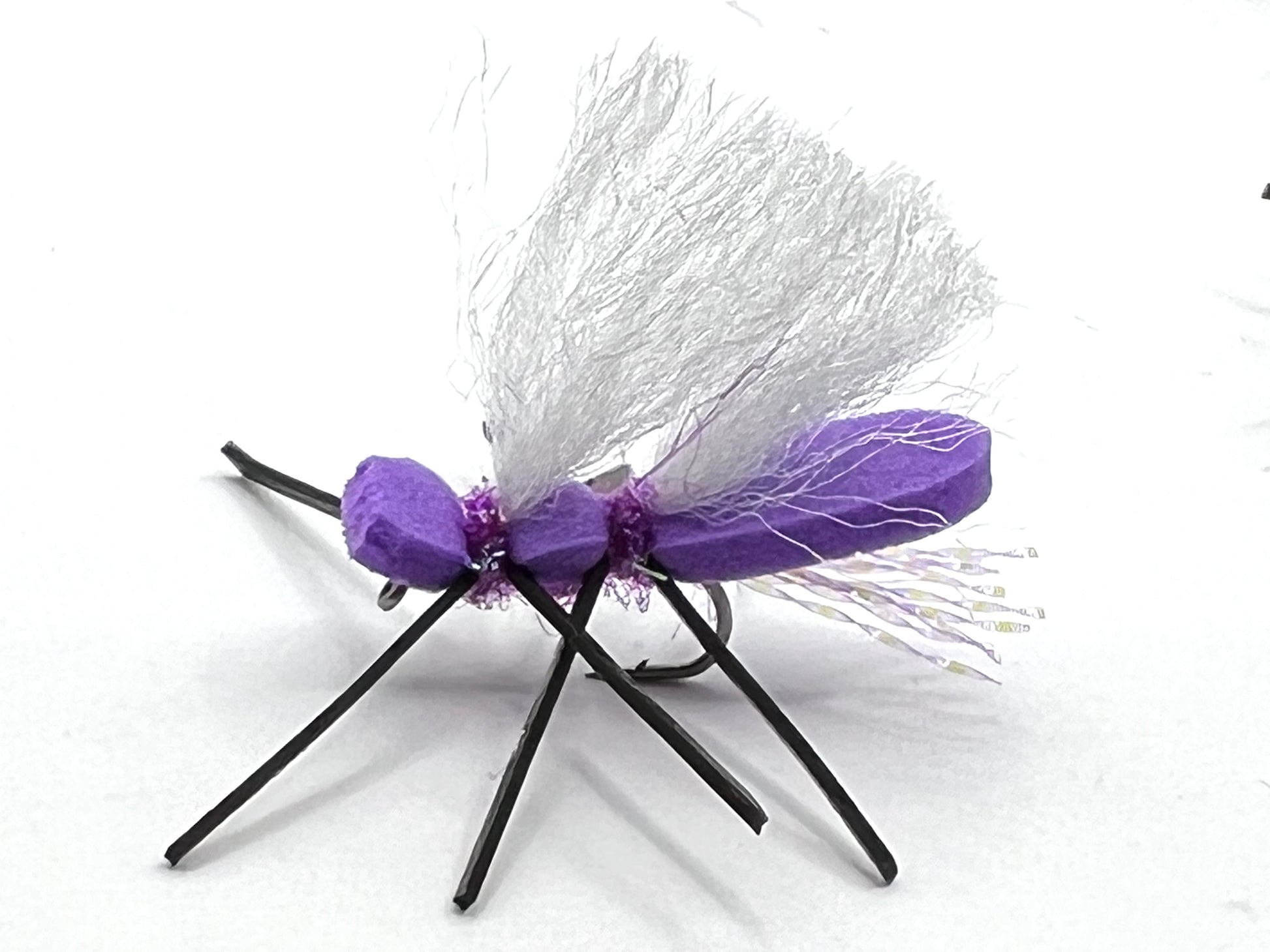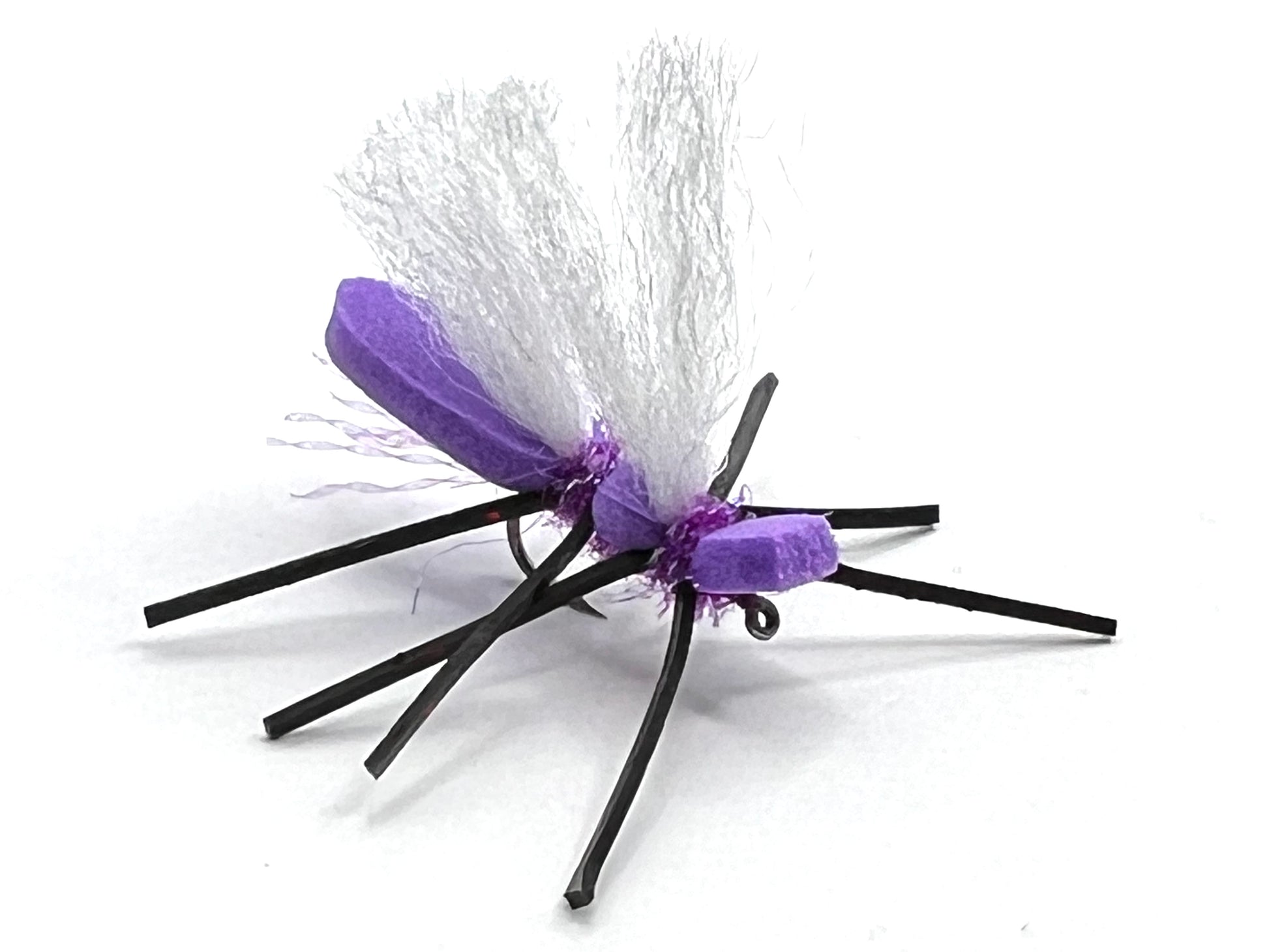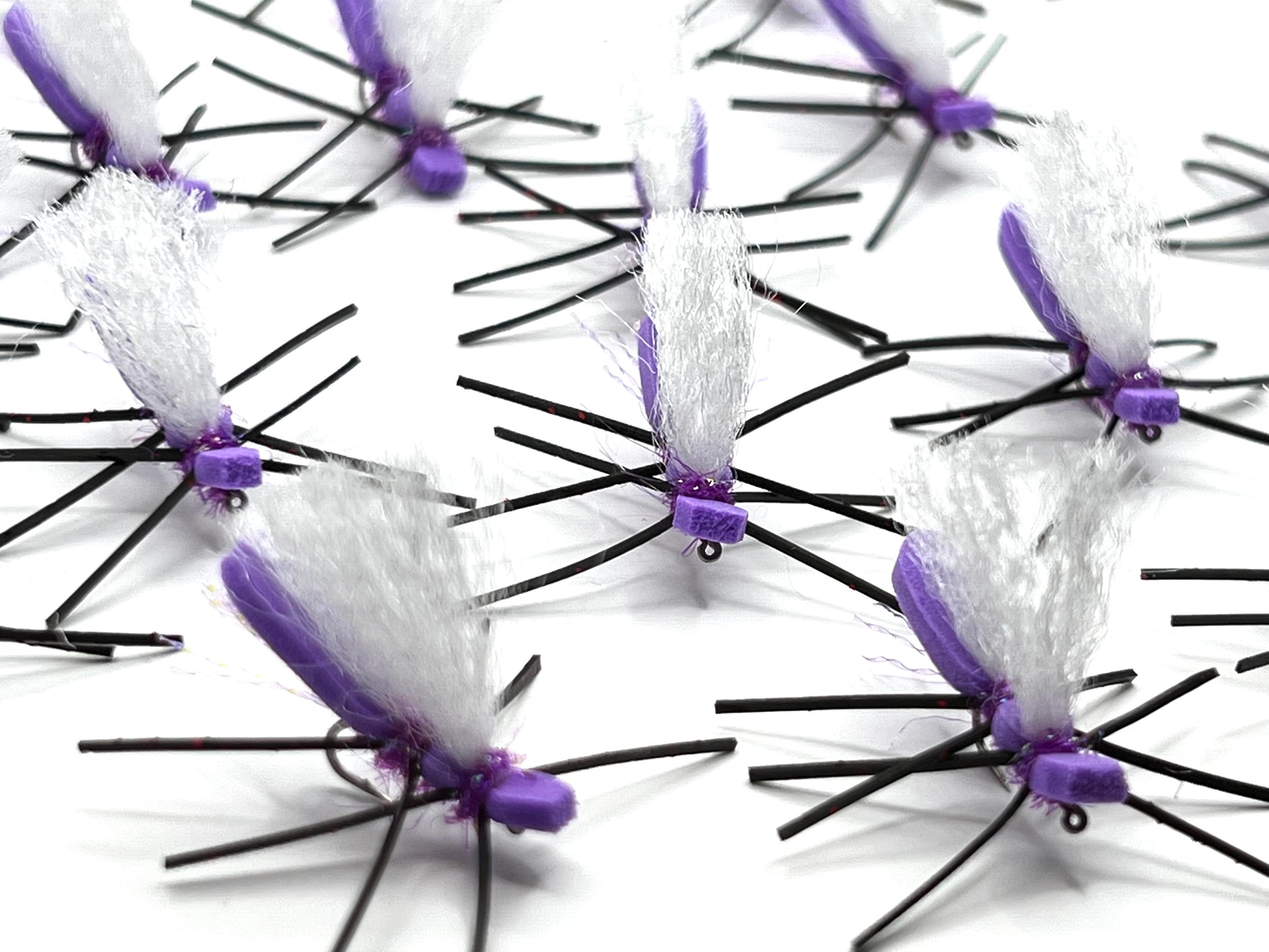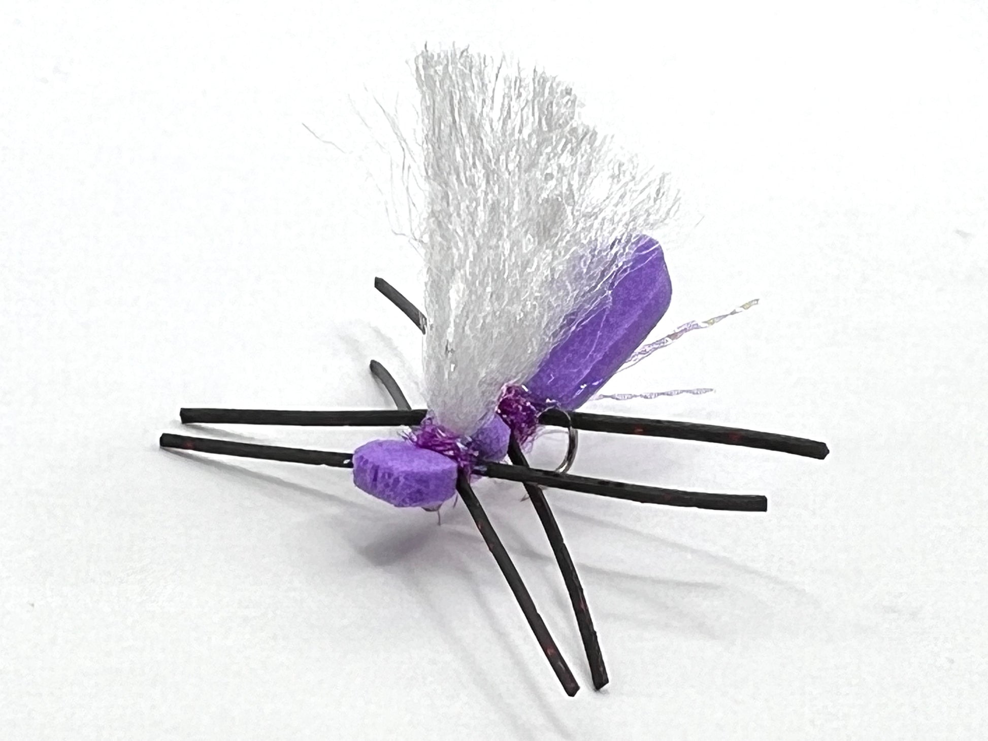 These size 12 Purple Chubby Chernobyls were made with Nature’s Spirit 2mm purple foam, Hareline After Glow Fiber wings, black w/red flecked Sililegs, and SLF Prism dubbing