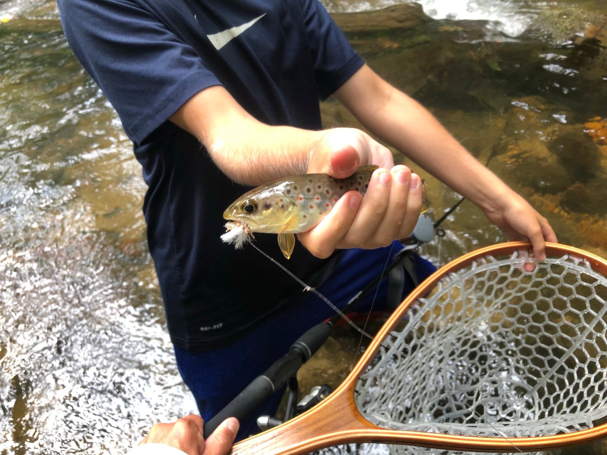 These size 14 Cinnamon Chubby Chernobyls were made with 2mm cinnamon foam, Hareline After Glow Fiber wings, barred pumpkin/green-orange Wapsi Sililegs, and olive and brown Prism SLF dubbing