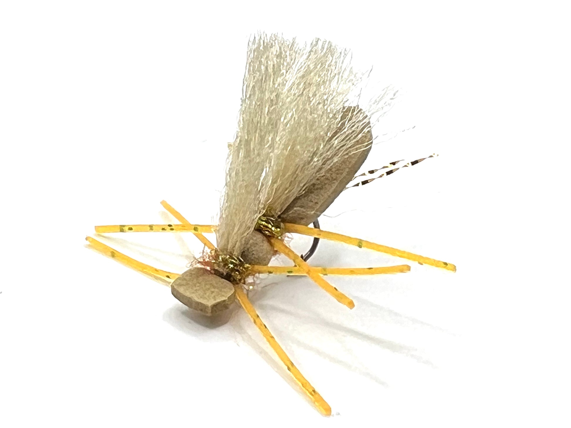 These size 10 Tan and Gold Chubby Chernobyls were made with 2mm tan foam, tan McFlylon wings, Wapsi gold flecked Sililegs, and Hareline Golden Brown Ice Dub