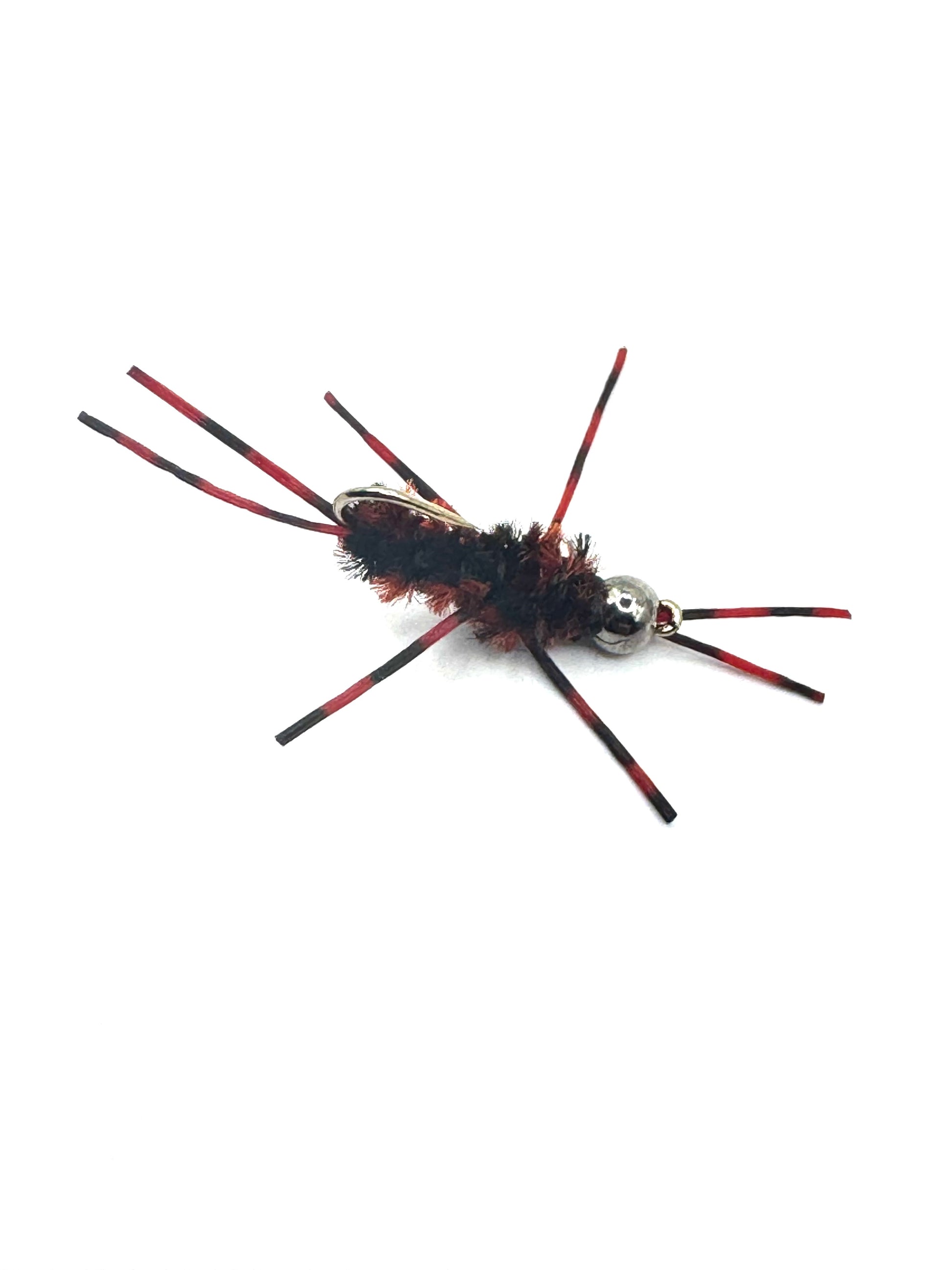 These Stoneflies are made with black nickel tungsten beads, MFC barred red Sexi-floss legs, and can be purchased in size 12 or 14