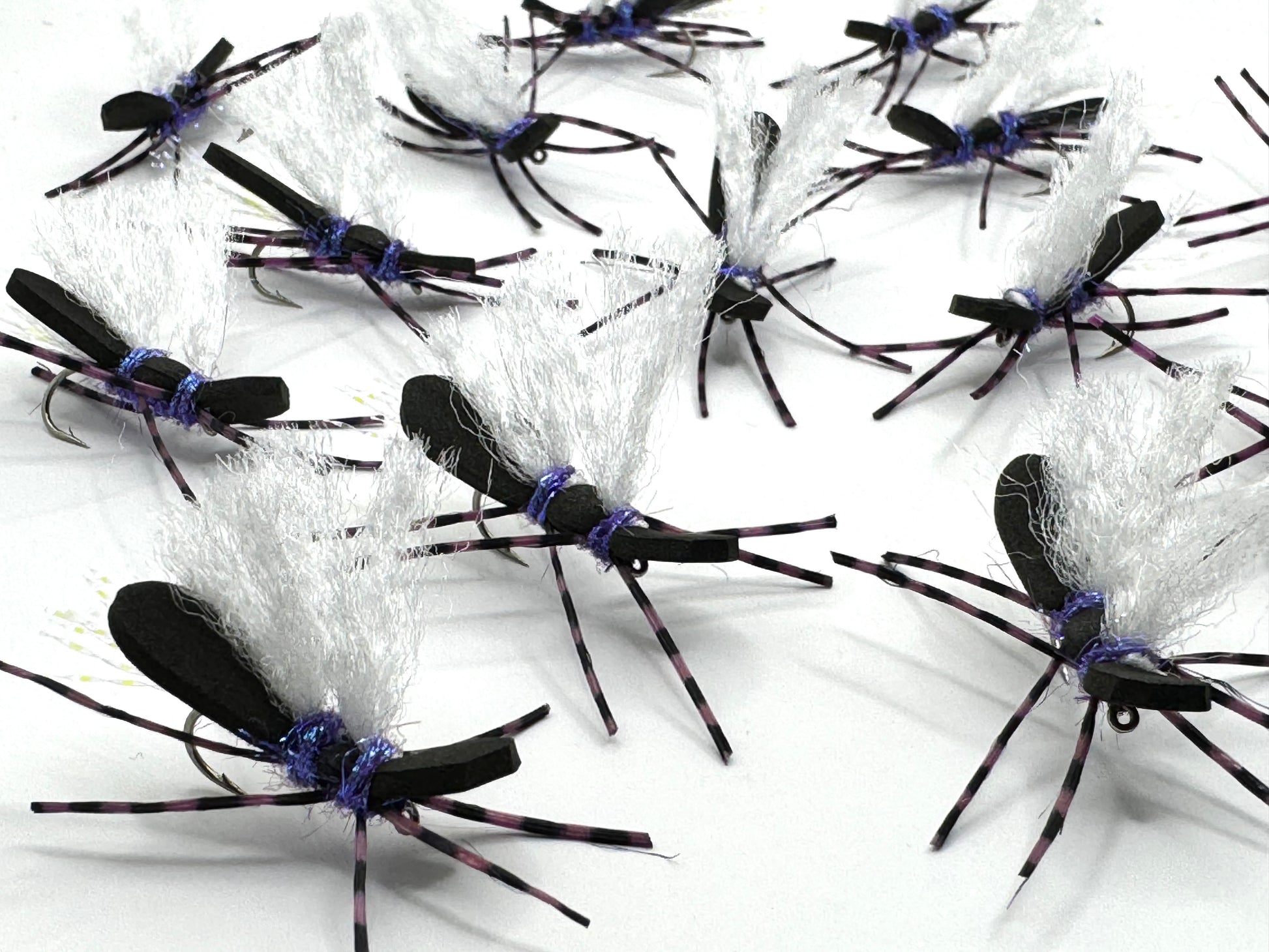 These size 8 Black and Purple Chubby Chernobyls were made with 2mm black foam, Hareline After Glow Fiber wings, MFC barred purple Sexi-floss legs, and SLF Prism dubbing