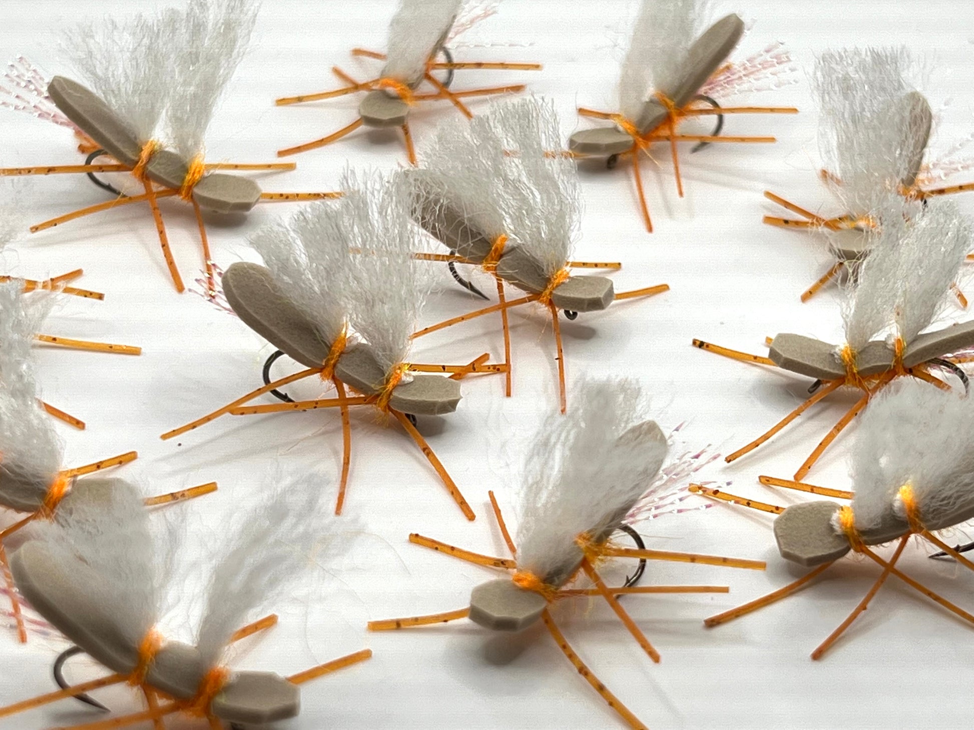 Made with 2mm tan foam and UV2 fluorescent orange dubbing, these size 8 Chubby Chernobyls can be fished by themselves, or used in a dry-dropper rig